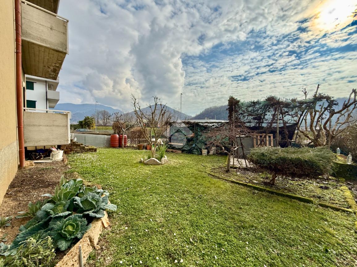 L’appartamento gode di esposizione a sud e dispone di un giardino privato su due lati della casa, ideale per vivere lo spazio esterno in totale privacy.