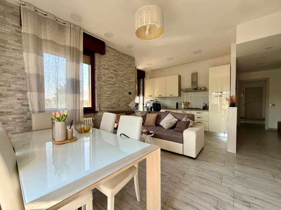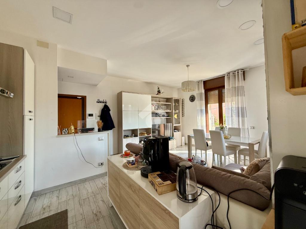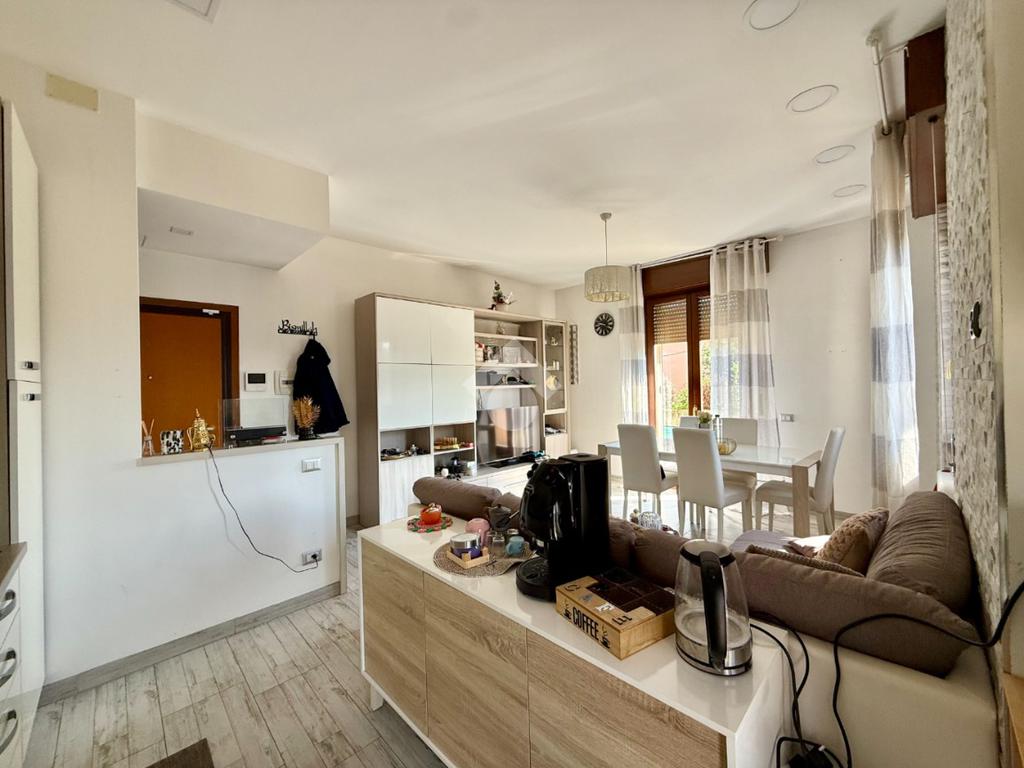 L'immobile, offre spazi ben distribuiti e funzionali ed è composto da un ampia zona giorno in open space con la cucina, ambiente che gode di un accesso diretto al terrazzo vivibile esposto al sole.