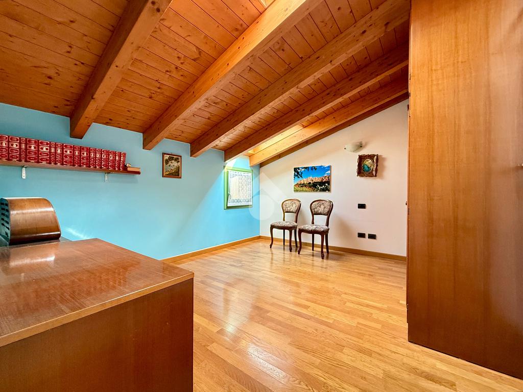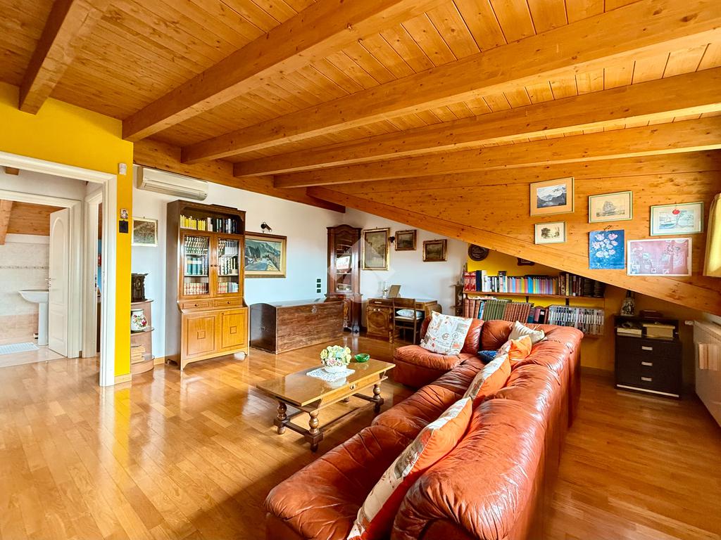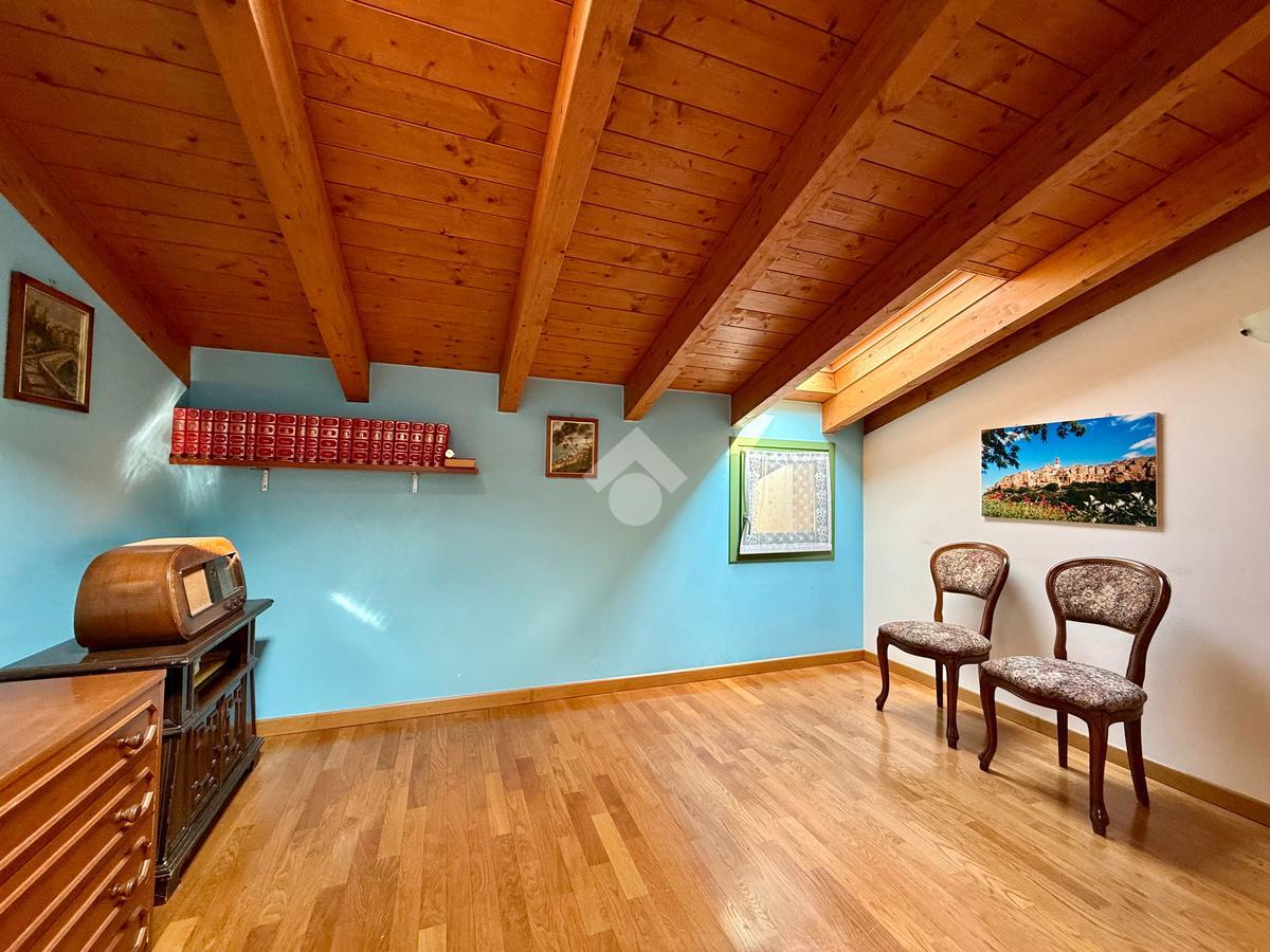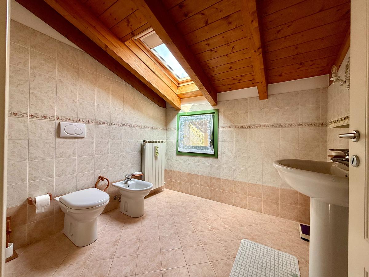 Salendo al primo piano, impreziosito da travi in legno a vista, lucernari e abbaini che donano grande luminosità agli ambienti, ci accolgono dei locali pluriuso e un secondo bagno dotato di doccia.