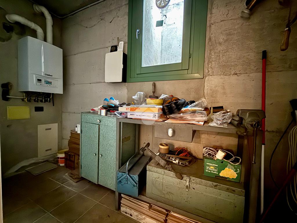 Il piano interrato completa la proprietà con spazi di servizio funzionali e ben organizzati: una lavanderia con doccia, un locale tecnico con vano caldaia e un comodo ripostiglio, facilmente sfruttabile anche come cantina o taverna. Da questo livello si accede direttamente al box doppio in lunghezza.